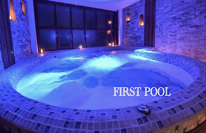 Construcción, equipamiento y mantenimiento de piscinas, spas y fuentes de agua, cascadas, velos y saunas;