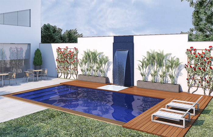 Una piscina desbordante, decorativamente hablando es de un nivel superior es la que desborda por uno o más bordes. Su principal característica es que el nivel del agua de las piscinas de obra se encuentra al mismo nivel que terreno del entorno, y en cuánto al mantenimiento, es la que mejor trabaja para obtener una superficie de espejo de agua totalmente limpia, permanentemente.